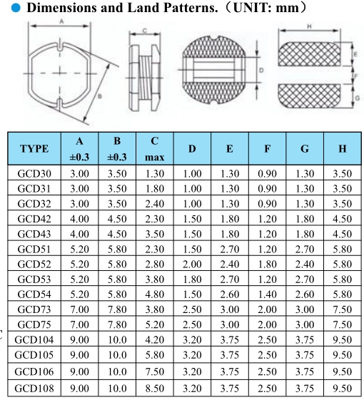 部分貼片電感封裝尺寸如下圖:
